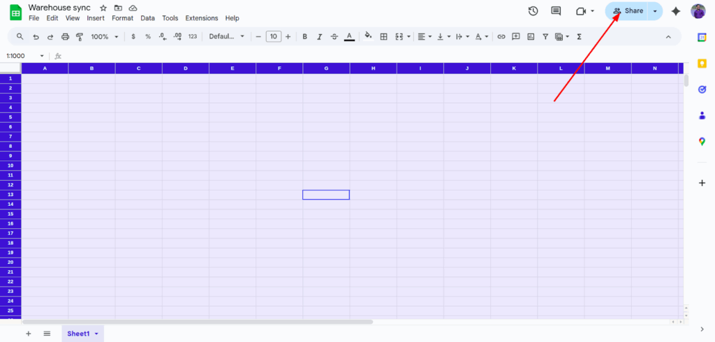 11. Share your sheet with the service account email (this will be obtained from your downloaded file )