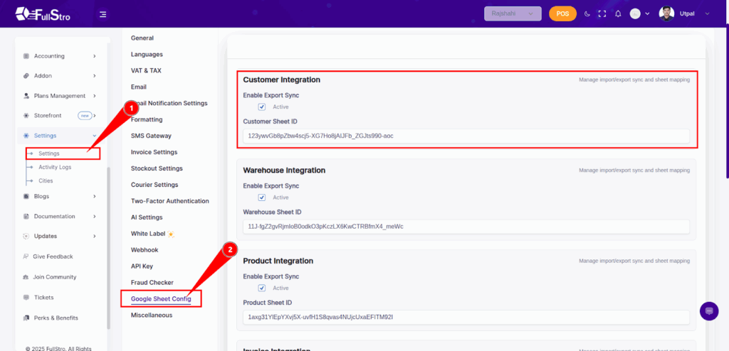 12. Then, in fullstro, set the Google Sheet ID from your Google Sheet URL