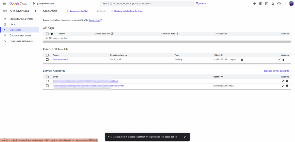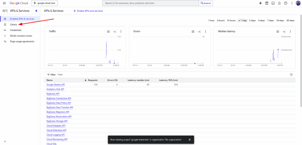 4. Once the project is created, go to APIs & Services > Library from the left panel.